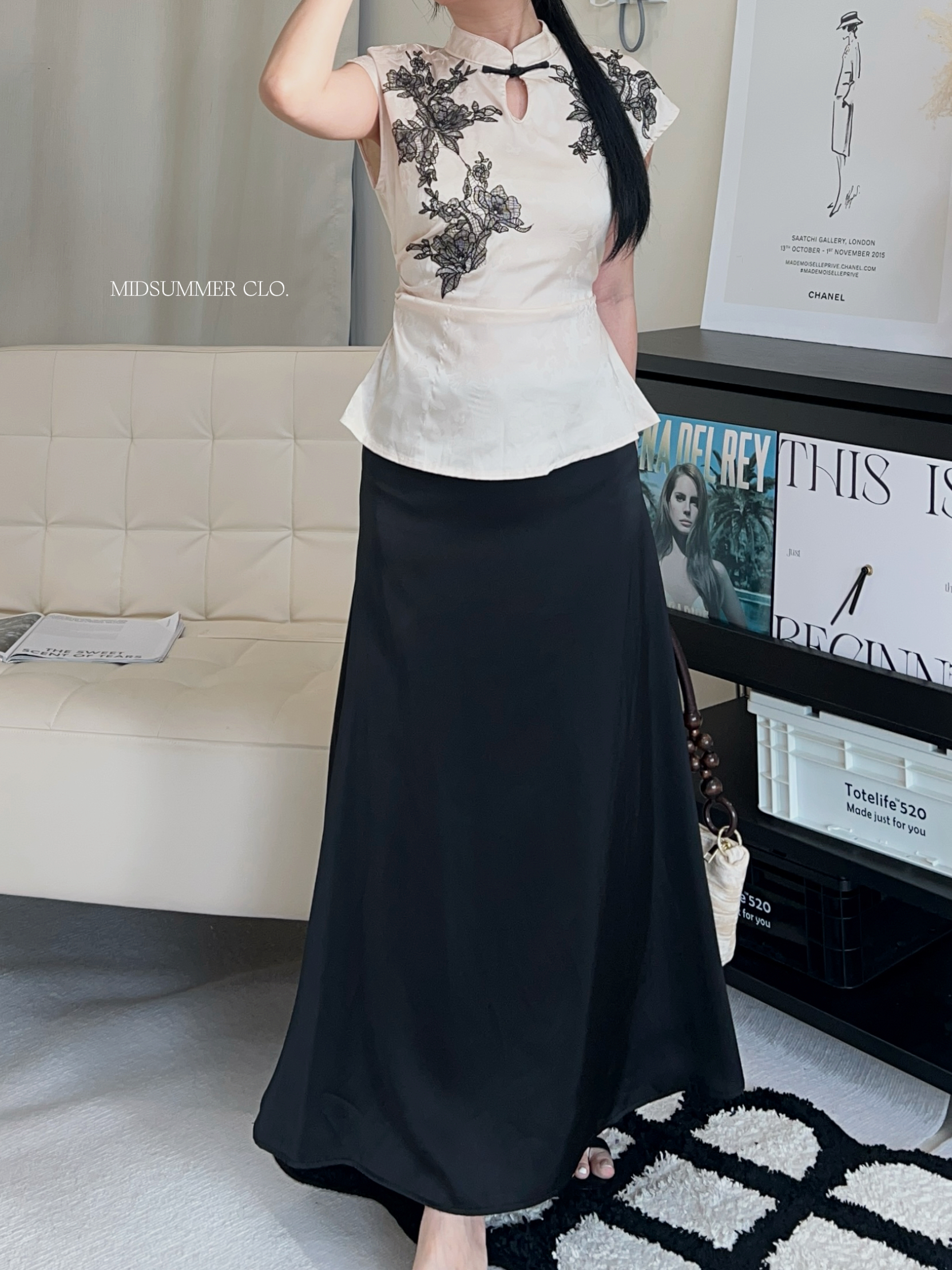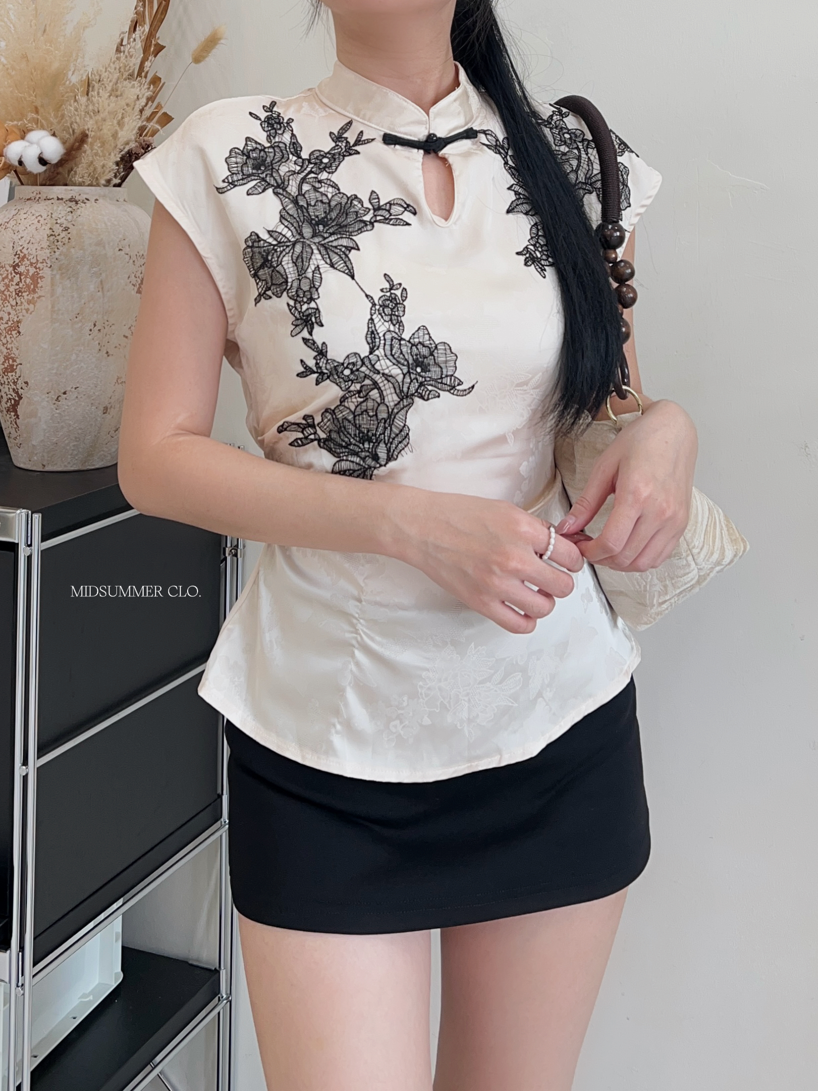 QP064 Embroidered Tie Back Cheongsam Top