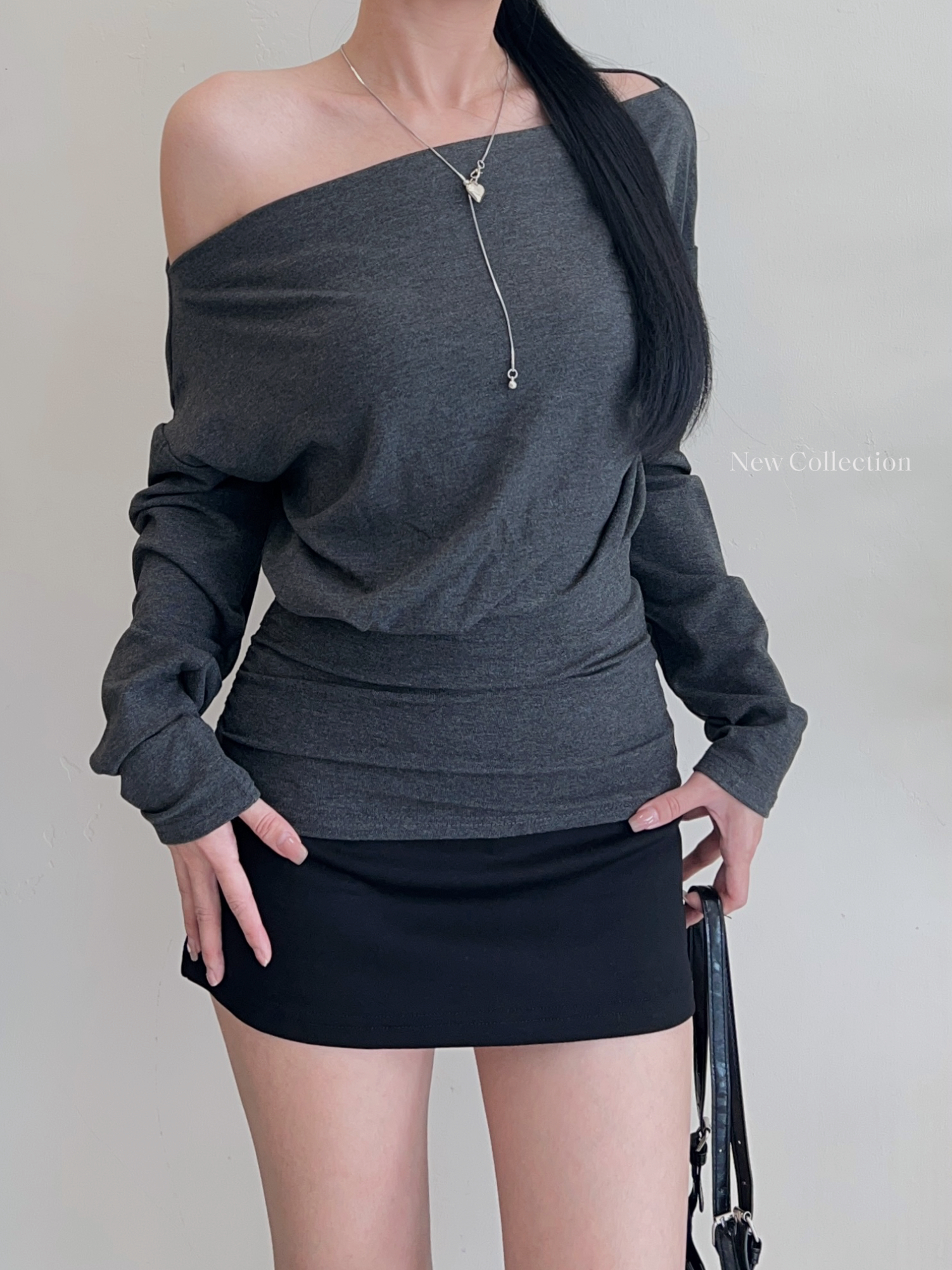 Off Shoulder/One Shoulder Solid Color Longsleeve Top
